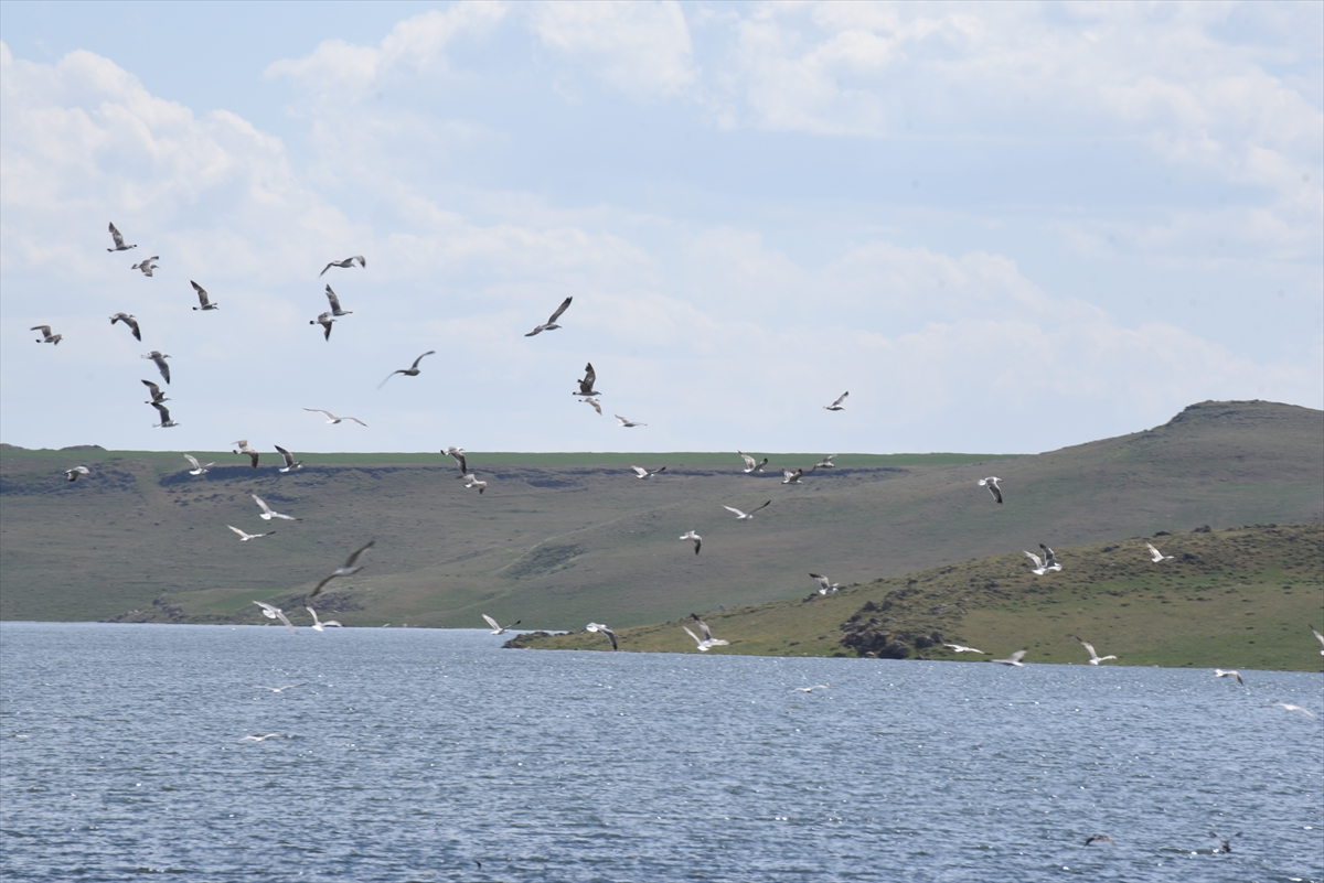 Büyük oranda dolan Kars Barajı, su yüzeyinde kalan minare ve kuşlar ile ilgi çekiyor
