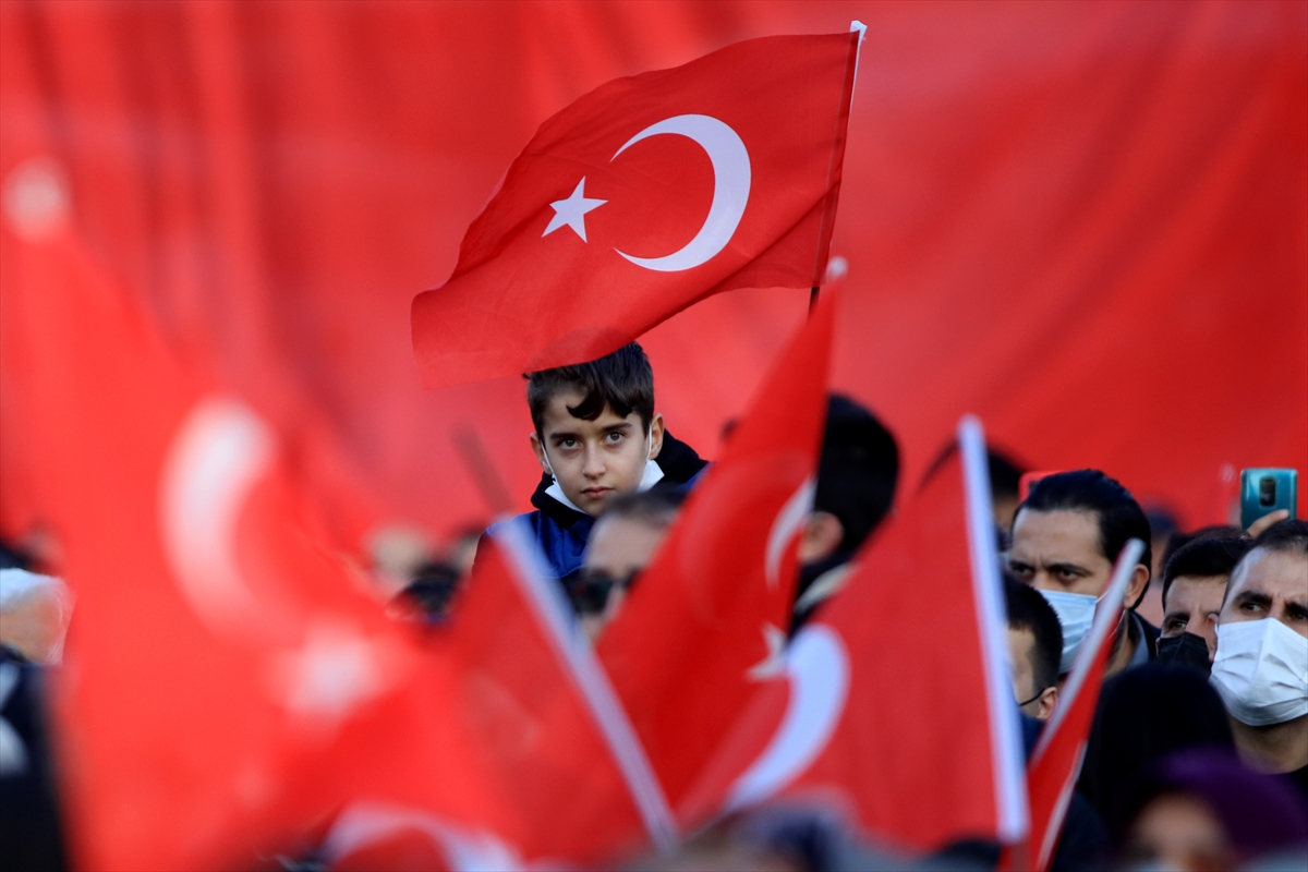 Çorba dağıtılıp, duaların edildiği etkinliğin ardından, 160 kayak öğretmeni ellerinde meşale ve Türk bayraklarıyla pistte kayarak gösteri yaptı. Gösterinin bitişiyle ateş başında toplanan katılımcılar, şehitleri andı.