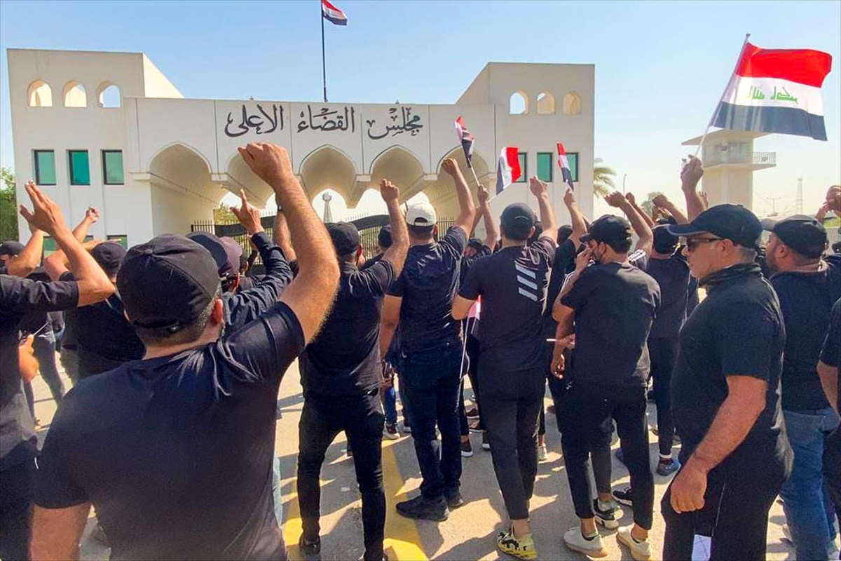Sadr destekçileri Yüksek Yargı Konseyi binası önünde eylem başlattı