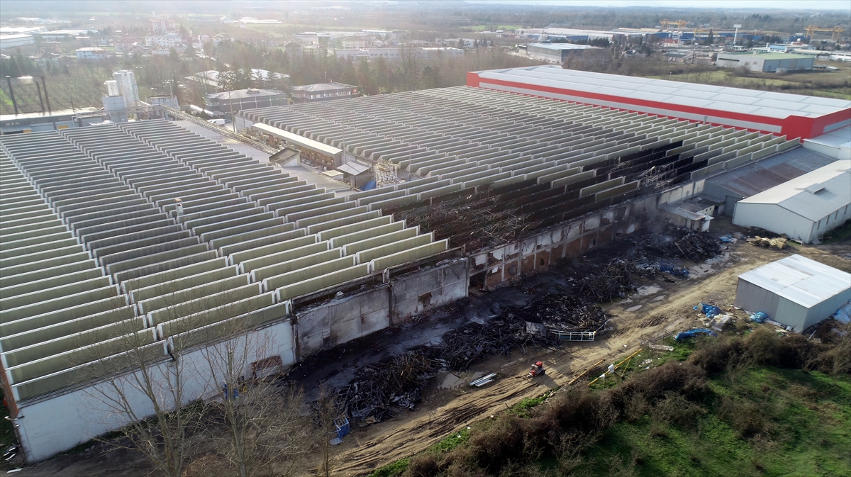 Düzce'de yangın sonrası mobilya fabrikasında oluşan hasar görüntülendi