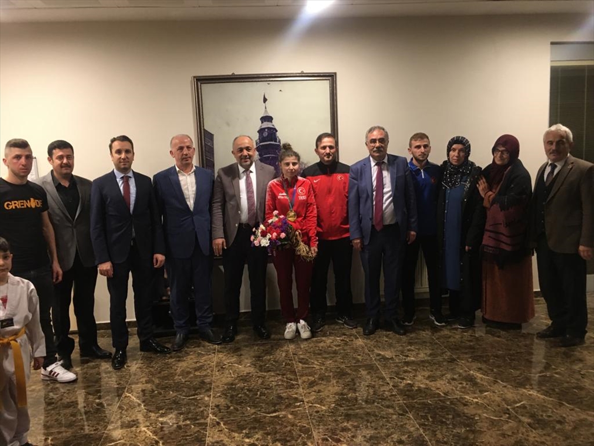 Brezilya'da altın madalya kazanan tekvandocu Merve Yazıcı, Samsun'da çiçeklerle karşılandı
