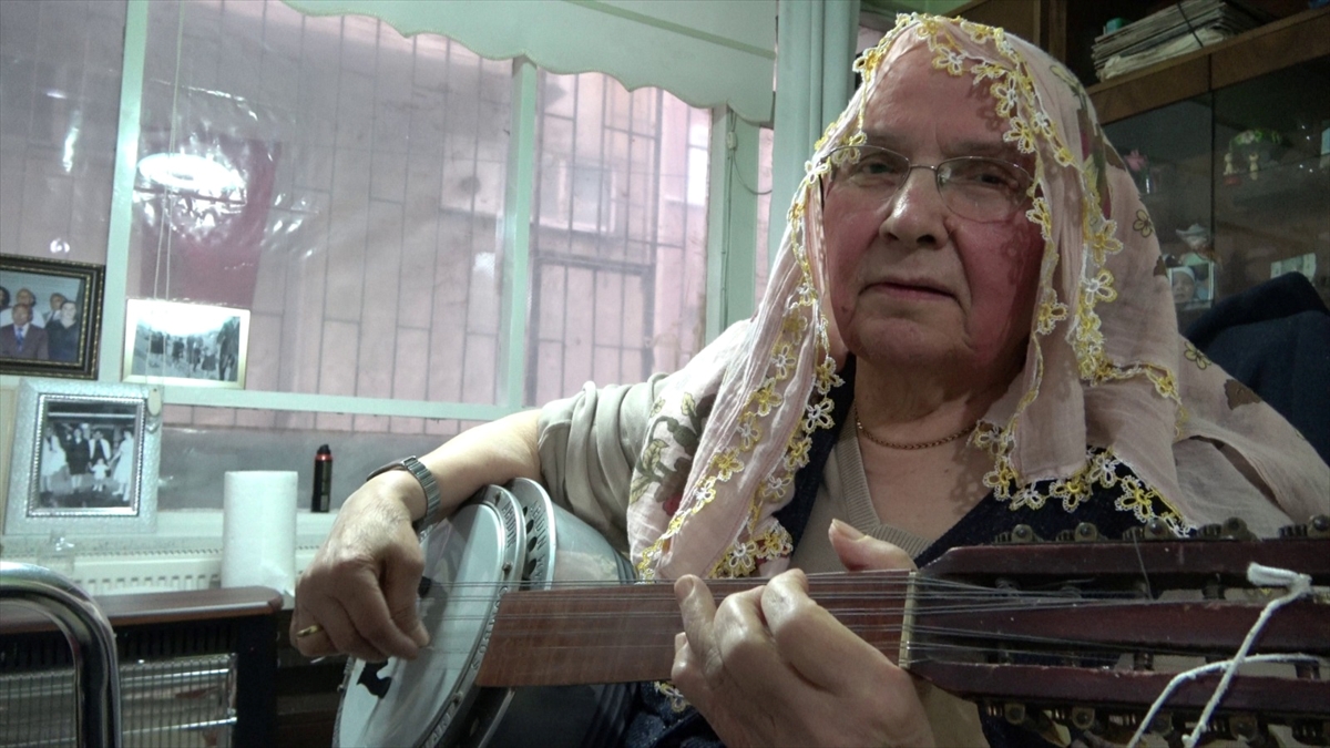 Evde tedavi hizmeti verilen kadın sağlık ekibine cümbüş çalarak teşekkür etti