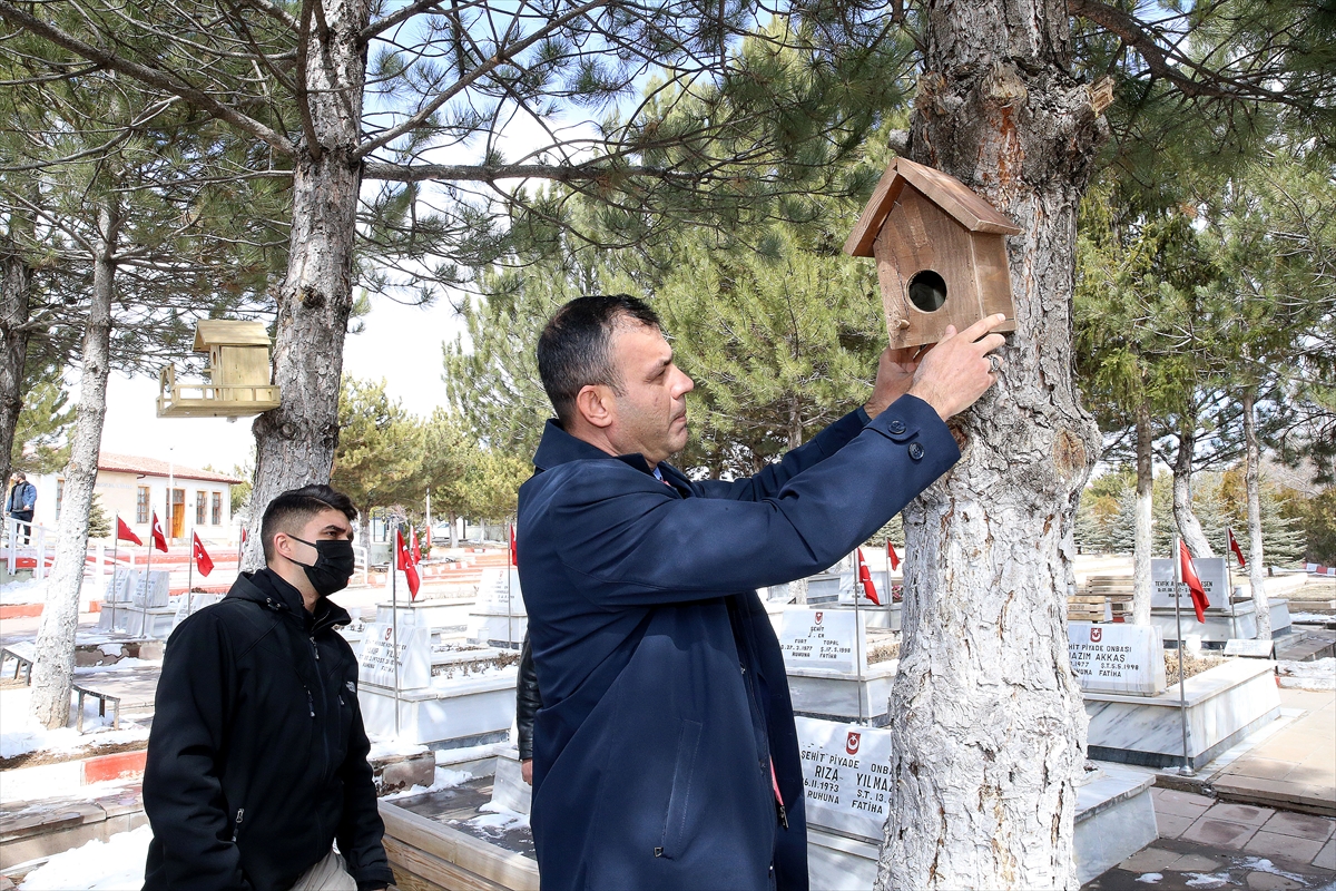 Sivas'ta mahkumların yaptığı kuş yuvaları, şehitlikteki ağaçlara asıldı
