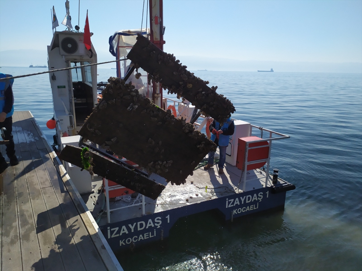 Dalgıçların İzmit Körfezi'nde karşılaştığı piknik masası deniz süpürgesiyle çıkarıldı