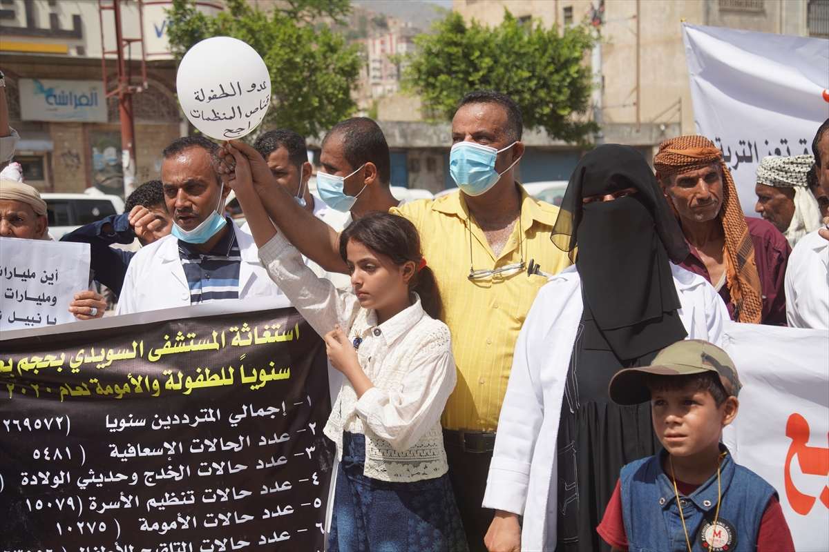 Yemen'in Taiz kentindeki doktorlar, bölgenin tek çocuk hastanesindeki sorunları protesto etti