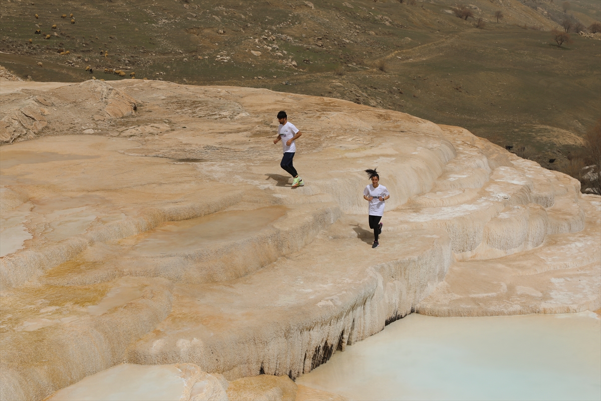 Vanlı milli atlet Nevin İnce, Başkale'deki travertenlerde antrenman yaptı