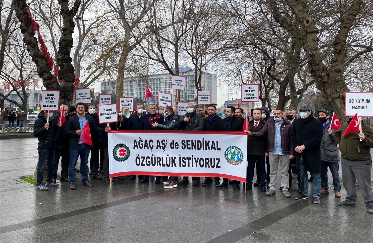 Ağaç ve Peyzaj AŞ'de çalışan Öz Orman-İş Sendikası üyeleri İBB'yi protesto etti