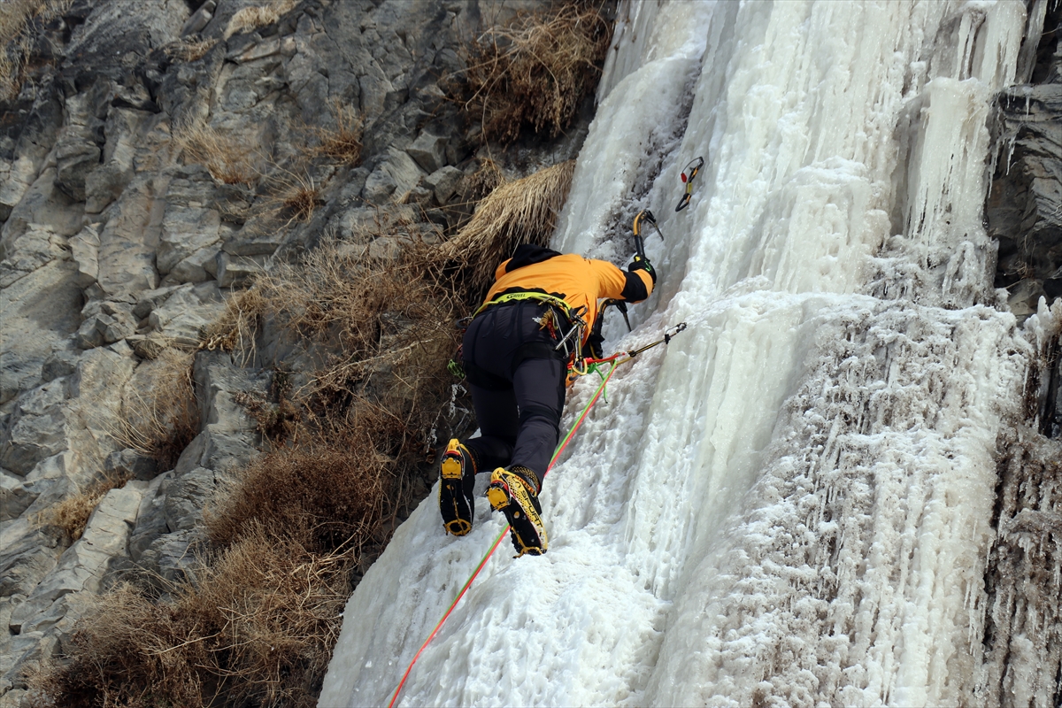 Dünyadaki 8 bin metreyi aşan 14 dağın 13'üne tırmanan ve Everest Dağı'na iki defa çıkan ilk Türk olma özelliğiyle dikkati çeken Tunç Fındık ile dağcı Arda Türegün ve çok sayıda sporcu, rotalarını belirledikten sonra dondurucu soğukların etkisiyle oluşan 30 metrelik buz sarkıtlarına tırmandı.