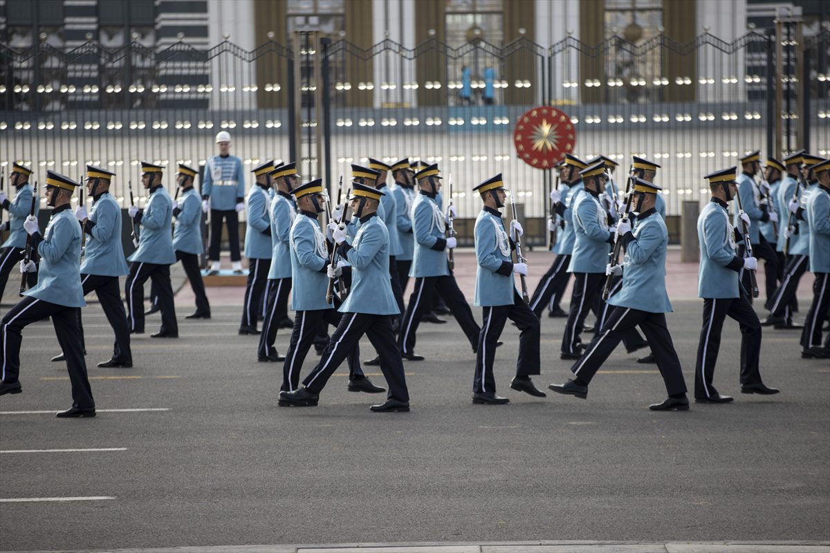 Cumhurbaşkanlığı Muhafız Alayı Tüfekli Gösteri Bölüğü nöbet değişimi gösterisi gerçekleştirildi