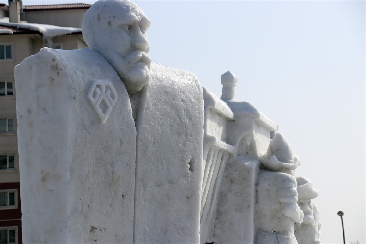 Ağrı'da kar festivali için masal kahramanlarının kardan heykelleri yapıldı