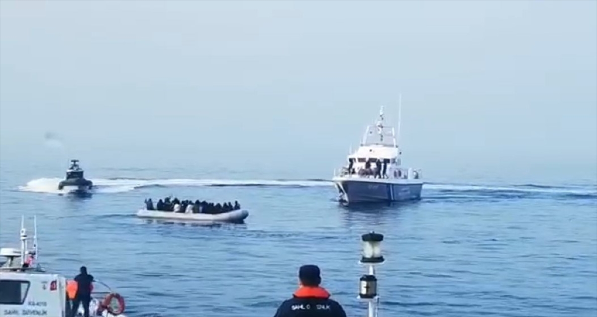 İzmir açıklarında Türk kara sularına itilen 75 düzensiz göçmen kurtarıldı